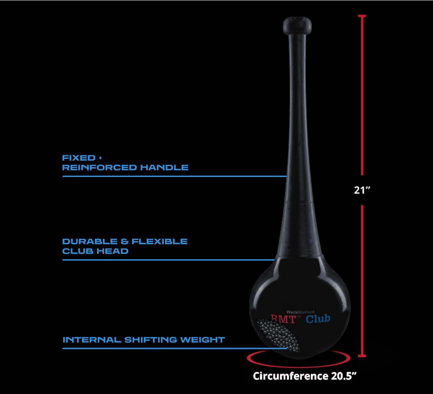 RMT® Club incorporates "shifting weight" inside the club head which creates dynamic resistance and audible feedback for proper positioning, timing, and coordination.